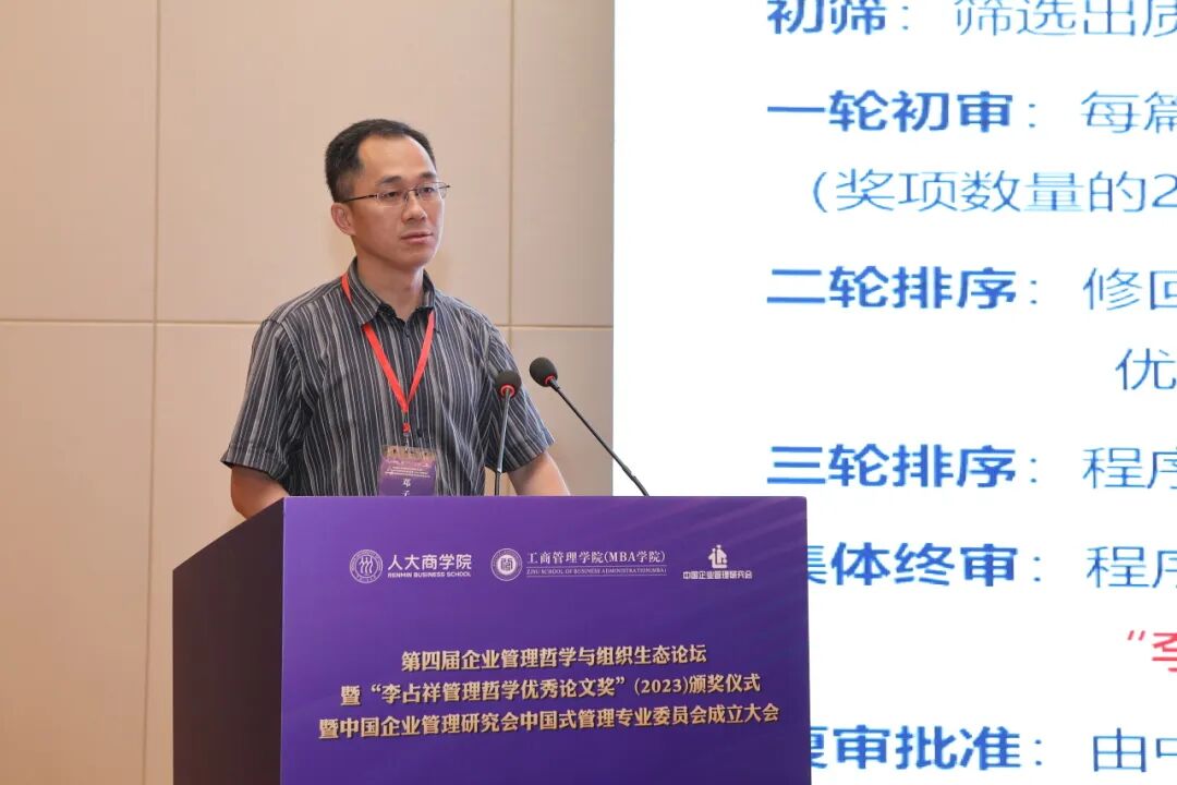 2023年7月29日-7月30日,第四届企业管理哲学与组织生态论坛暨“李占祥管理哲学优秀论文奖”(2023)颁奖仪式暨中国企业管理研究会中国式管理专业委员会成立大会在杭州顺利举行。