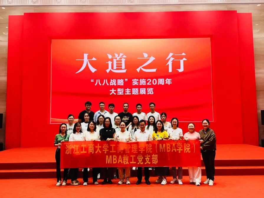 为深入学习贯彻习近平新时代中国特色社会主义思想和党的二十大精神,10月15日下午,工商管理学院(MBA学院)MBA教师党支部、MBA学生党支部在支部书记章慧、韦杰的带领下前往浙江展览馆参观“八八战略”实施20周年大型主题展览活动。
