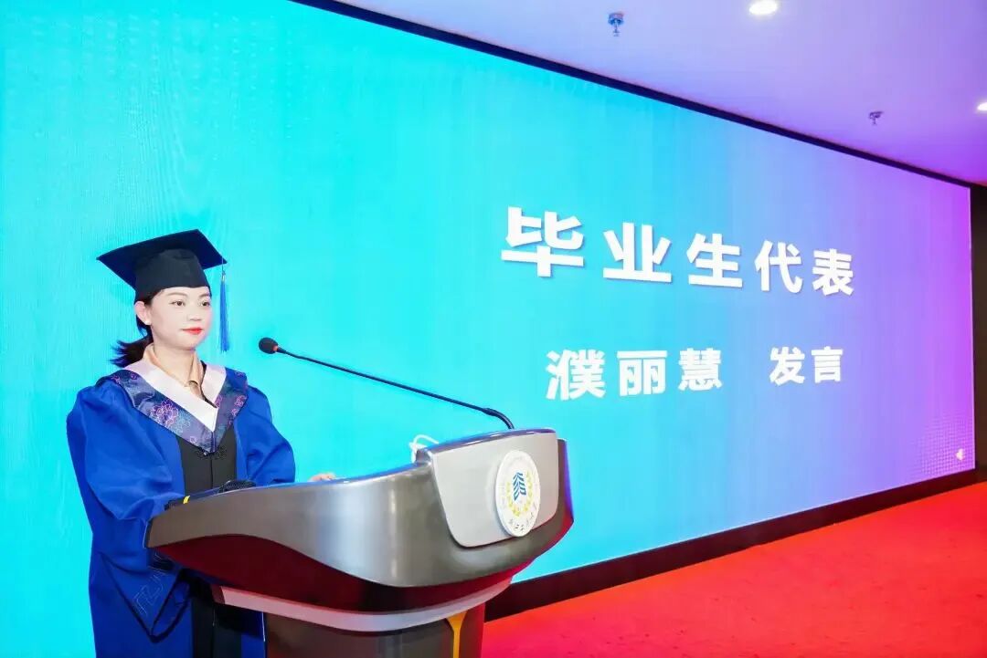 22MBA集中班濮丽慧同学作为毕业生代表发言。她感谢学校、老师和同学们在她这段学习旅程中给予的帮助和支持,并鼓励大家始终保持学习的热情和姿态,心怀感恩,继续加油,在不确定的环境中找到确定的方向,努力创造自己最大的价值。