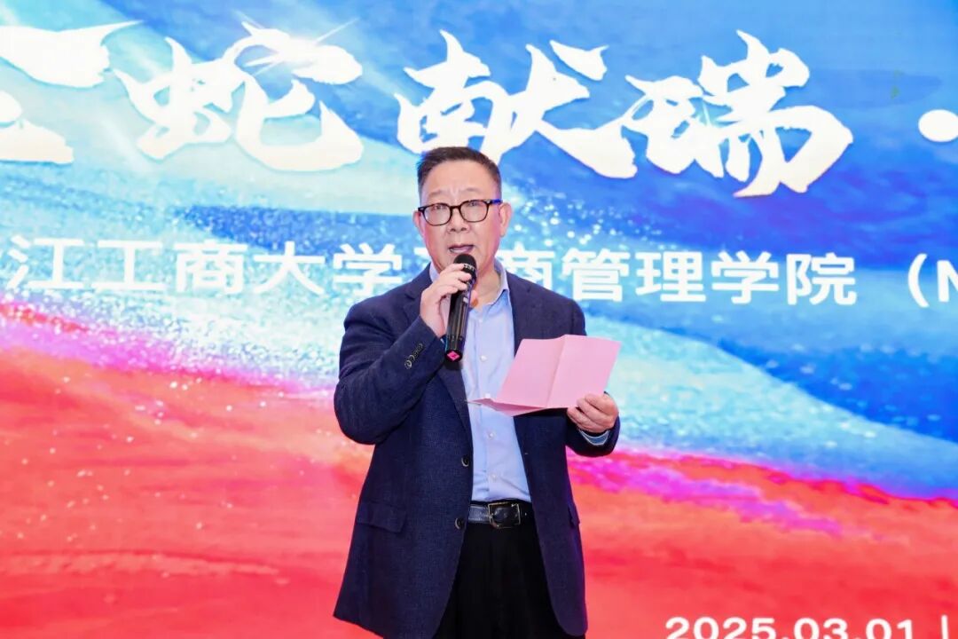 天地春晖近,日月开新元。近日,浙江工商大学工商管理学院(MBA学院)校友会“金蛇献瑞·共绘华章”主题年会庆典圆满举行。浙江工商大学党委副书记方向明,浙江工商大学副校长陈衍泰,浙江工商大学原党委书记、校长胡祖光,管理学院校友会会长刘振辉,管理学院校友会常务副会长、MBA校友会会长张海林,管理学院校友会常务副会长、MPM校友会会长陈灯红,发展联络办公室(校友办)主任、社会合作办公室主任罗德明,工商管理学院(MBA学院)院长俞荣建,党委书记孙元,原MBA学院院长、原工商管理学院党委书记乜标,原MBA学院院长钱水土,计划财务处副处长连超,工商管理学院(MBA学院)党委副书记袁宏亮,副院长朱玥、岑杰,浙江工业大学管理学院、杭州电子科技大学管理学院、浙江财经大学管理学院的老师和校友会代表,全体校友会理事、历届校友代表、教师代表、班主任代表等出席活动。