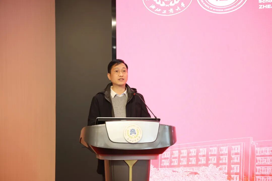 浙商博物馆副馆长钭卓珍讲话聚焦浙商博物馆与学院合作发展的新思路与新机遇。她指出,浙商博物馆作为大学中较为少见的部门,与学院在科研和学生培养方面具有巨大合作潜力。博物馆日常联络的浙江企业家群体庞大且多元,涵盖本土及外地浙商,是学院科研的宝贵研究对象。在学生培养上,博物馆已与学院开展多项学生活动联动,为学生提供浙商文化知识与锻炼机会。最后,钭卓珍希望博物馆与管理学院能从平行线交织成锁链,紧密合作,探索更多机会,助力学校发展。