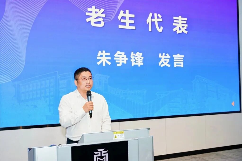老生代表,24MPM1班朱争锋发言。他热情地向25级新生表达诚挚的问候,并且分享了自己这一年来在浙商大的收获与感悟。在实践中出真知,是朱争锋给新生的积极建议,他祝愿所有新生在MPM大家庭中度过美好时光。