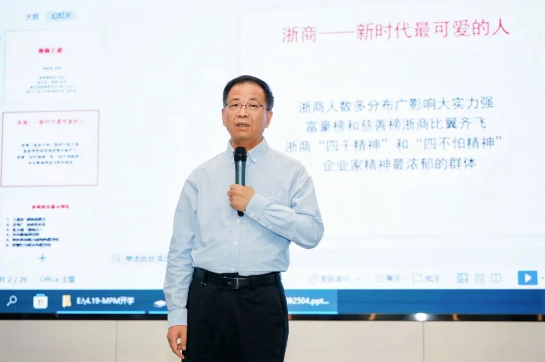 浙商博物馆馆长杨轶清教授为新生们带来了一场新时代浙商精神与商道智慧的讲座。他深入剖析了浙商精神在新时代的特殊意义与价值,通过丰富的历史案例和丰富的现代实践,生动地展示了浙商坚韧不拔的创业历程、勇于开拓创新的精神以及追求卓越的企业家风范。