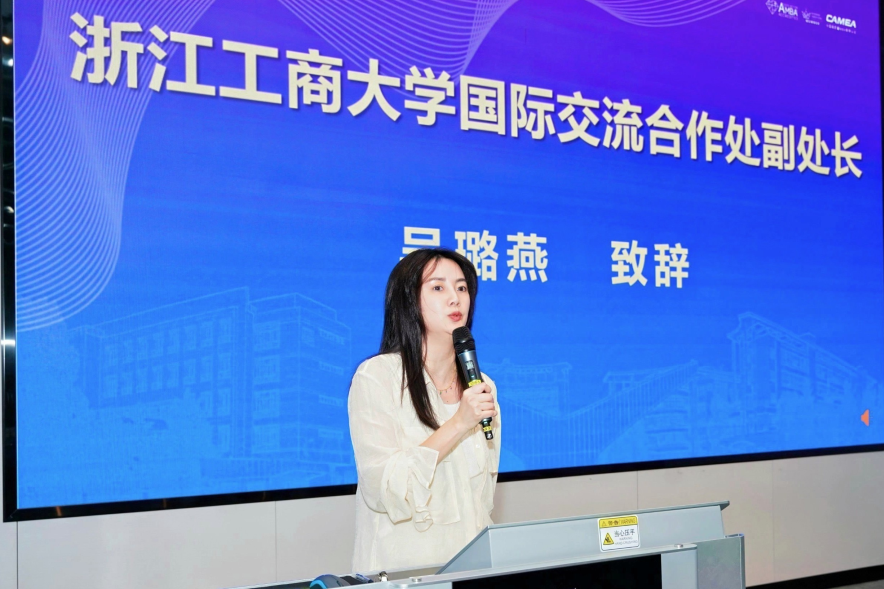 浙江工商大学国际交流合作处副处长吴璐燕发表致辞,她介绍了学校的国际化办学成果,以及MPM项目在人才培养、科学研究和社会服务等方面取得的成就。吴老师提出三点期望:一是抱有持之以恒的学习心态;二是提升为人为学的人生境界;三是珍惜回到校园的机会,结交良师,收获益友,在浙商大度过精彩难忘的时光。