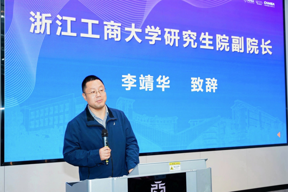 浙江工商大学研究生院副院长李靖华致辞,他祝贺大家顺利进入浙江工商大学MPM项目学习,开启人生新篇章,并介绍了学校的历史沿革、办学特色、人才培养成果以及近期发展动态。他以“诚毅勤朴”的校训,勉励新生们平衡好工作与学业,期望新生用项目管理的思维,成就自己的研究生生活和美好辉煌的未来。
