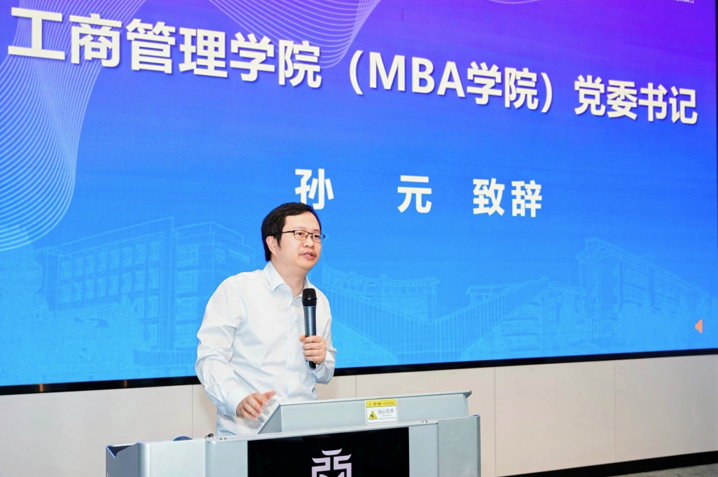 工商管理学院(MBA学院)党委书记孙元发表致辞。他阐述了学院和学科的发展动态,并期望新生在接下去的两年中,以终身学习为矛,深耕专业领域,成为懂技术善管理通国际的复合型人才;以知行合一为镜,平衡多种角色,以坚韧和智慧书写人生新篇章;以开放包容为怀,拥抱多元文化,不断拓宽视野,成为中国连接世界的桥梁。