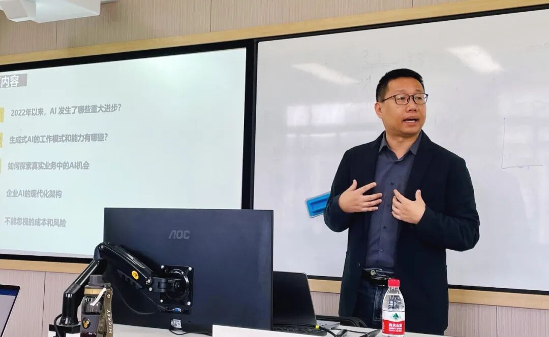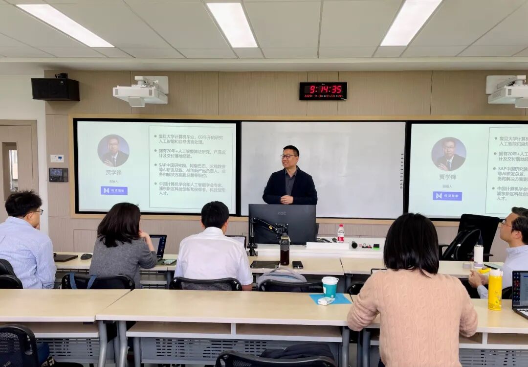 2025年4月13日,浙江工商大学MBA教育中心24级数领班《人工智能与大语言模型》课堂迎来了一场别开生面的联袂授课。绘话智能创始人贾学锋先生应厉小军教授之邀,为同学们带来了一场聚焦人工智能前沿应用的深度分享。
