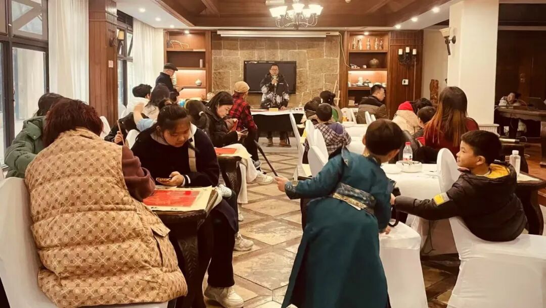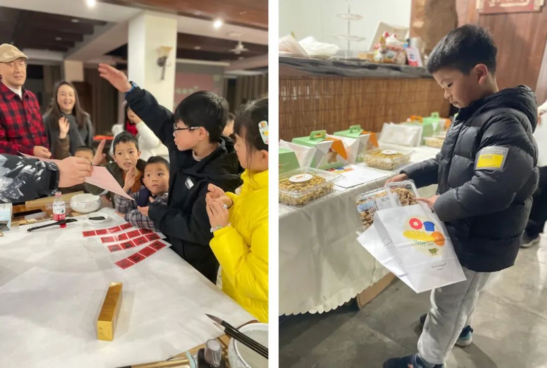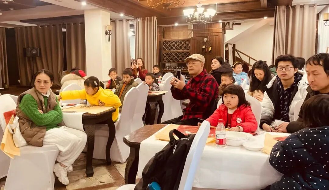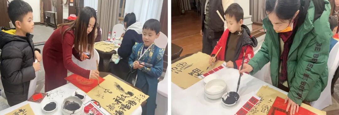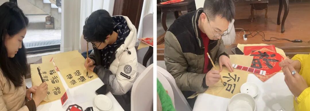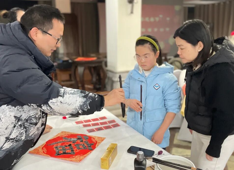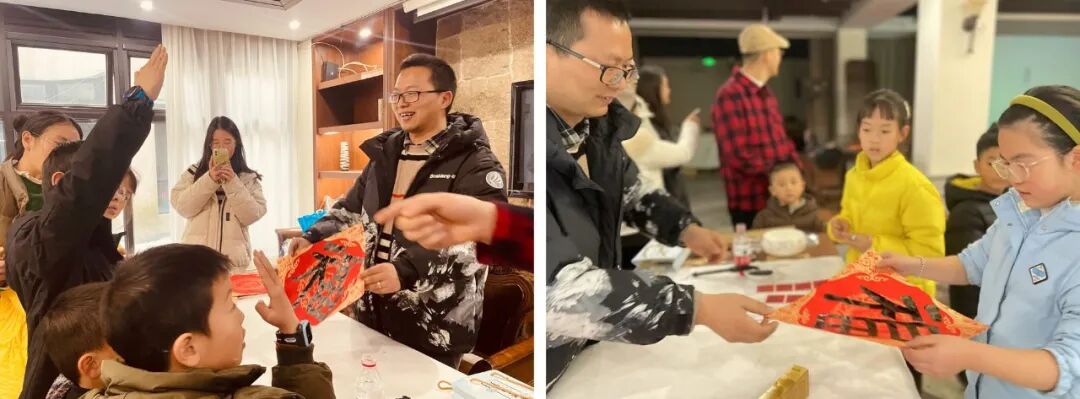 在卢校友的示范和指导下,校友们全家总动员,体验临摹和创作春联福字。现场气氛热闹,其乐融融。