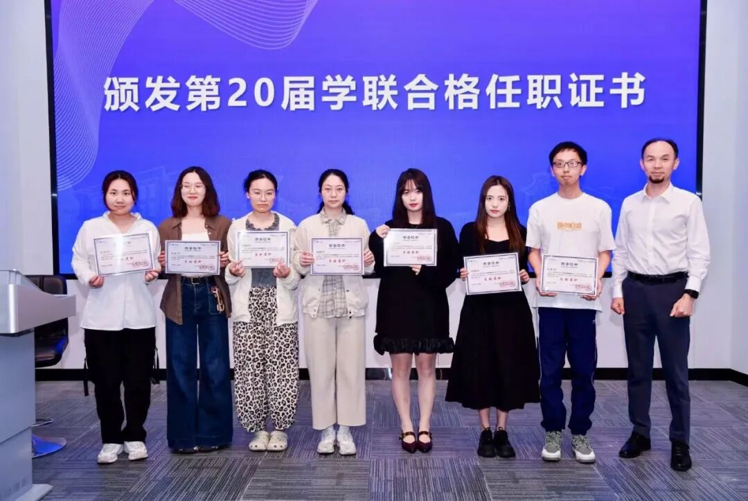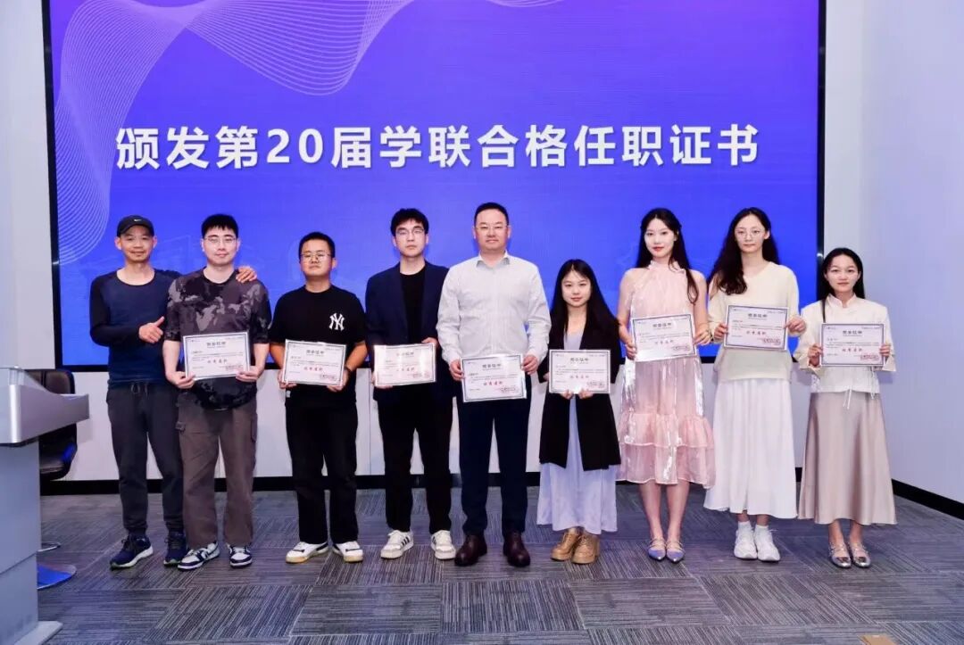学联第20届任职证书颁发仪式由往届主席徐培军、肖克文、陈卫星对优秀骨干进行分层表彰并合影留念。