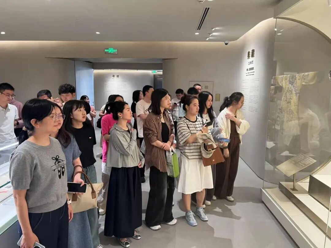 在万事利丝绸文化博物馆中,师生们通过沉浸式体验,深入了解非遗技艺与现代科技在丝绸产业中的融合应用。特别是在参观“雀金裘”工艺制作流程时,大家无不惊叹于其复杂的工序与精湛的技术,也更直观地感受到万事利从传统纺织到文化创意的转型之路。