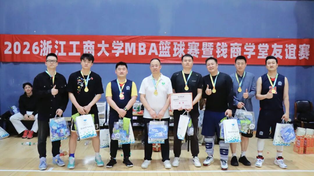 比赛结束后,活动进入颁奖与抽奖环节。浙江工商大学工商管理学院(MBA学院)篮球俱乐部主席金德煌依次为冠亚军获奖队伍颁发奖章、证书和纪念奖品,并与获奖队伍合影留念。